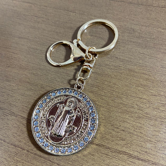 CHAVEIRO LUXO MEDALHA SÃO BENTO COM STRASS MOD3 (6 UNIDADES)