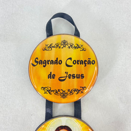 ESCAPULÁRIO INOX RESINADO PRETO E BRANCO SAGRADO CORAÇÃO DE JESUS E NOSSA SENHORA APARECIDA (6 UNIDADES)