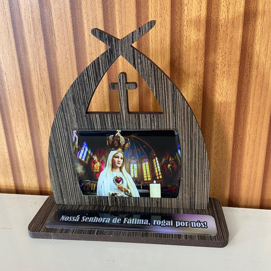 CAPELA MDF TABACO RESINADA NOSSA SENHORA DE FÁTIMA 15CM (1 UNIDADE)