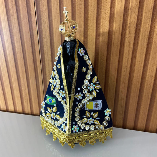 IMAGEM DE RESINA NACIONAL RÉPLICA NOSSA SENHORA APARECIDA COM MANTO E COROA 21CM (1 UNIDADE)