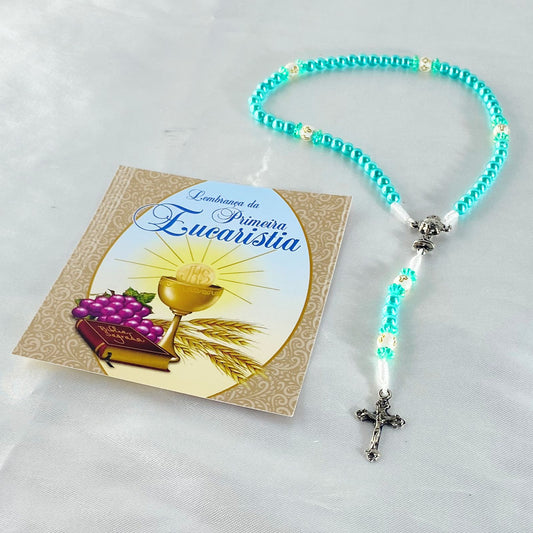 TERÇO PÉROLA PRIMEIRA EUCARISTIA AZUL 4MM (3 UNIDADES)