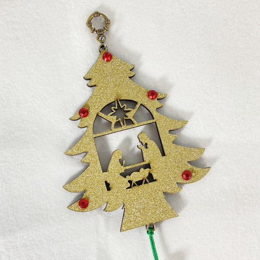 ENFEITE MDF ÁRVORE DE NATAL DOURADA PRESÉPIO 25CM (1 UNIDADE)