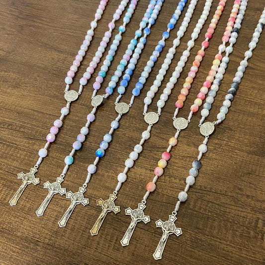 TERÇO CRISTAL MEDALHA SÃO BENTO CORES SORTIDAS (6 UNIDADES)