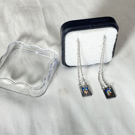 ESCAPULÁRIO INOX RESINADO COLORIDO SAGRADO CORAÇÃO DE JESUS E NOSSA SENHORA DO CARMO P (6 UNIDADES)