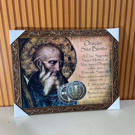 QUADRO COM MOLDURA RESINADO SÃO BENTO 34CMX44CM (1 UNIDADE)