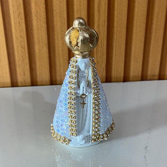 IMAGEM DE GESSO NOSSA SENHORA APARECIDA BRANCA COM STRASS 10,5CM (1 UNIDADE)