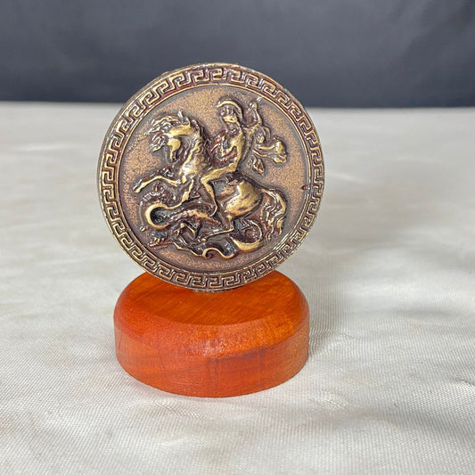 IMAGEM DE MESA METAL OURO VELHO SÃO JORGE COM BASE DE MADEIRA 5,5CM (1 UNIDADE)