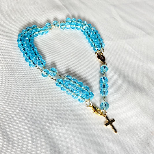 TERÇO PULSEIRA CRISTAL AZUL TRANSPARENTE (3 UNIDADES)