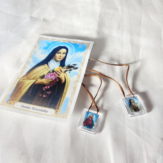 ESCAPULÁRIO CORDINHA SANTA TERESINHA E SAGRADO CORAÇÃO DE JESUS (12 UNIDADES)