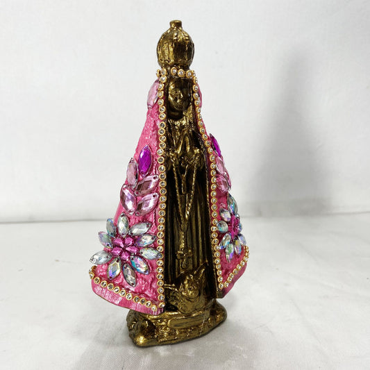 IMAGEM DE GESSO NOSSA SENHORA APARECIDA DOURADA E ROSA COM PEDRARIA 14,5CM (1 UNIDADE)