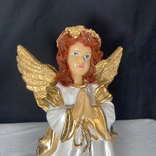 IMAGEM DE GESSO ANJO DA GUARDA BRANCO E DOURADO 23CM (1 UNIDADE)