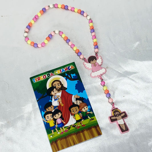 TERÇO DA CRIANÇA ANJO DA GUARDA ROSA CONTA COLORIDA 08MM (1 UNIDADE)