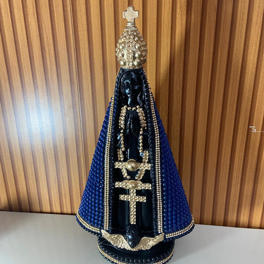IMAGEM DE GESSO NOSSA SENHORA APARECIDA AZUL COM STRASS 39CM (1 UNIDADE)