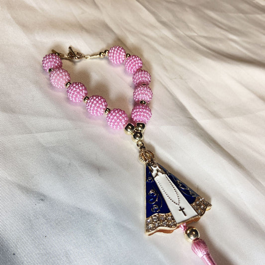 DEZENA PARA CARRO NOSSA SENHORA APARECIDA AMORA ROSA MOD1 12MM (3 UNIDADES)