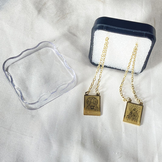 ESCAPULÁRIO DOURADO SAGRADO CORAÇÃO DE JESUS E NOSSA SENHORA DO CARMO (6 UNIDADES)