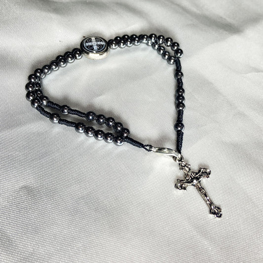 TERÇO PULSEIRA HEMATITA MEDALHA RESINADA MEDALHA SÃO BENTO ( 6 UNIDADES)