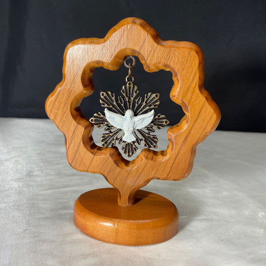 ADORNO DE MESA MADEIRA VAZADO DIVINO ESPÍRITO SANTO METAL 12CM (1 UNIDADE)
