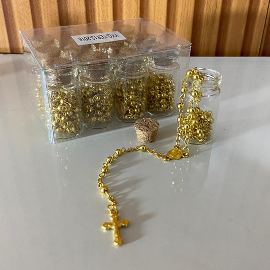 TERÇO DOURADO NA GARRAFA NOSSA SENHORA APARECIDA 4MM (12 UNIDADES)