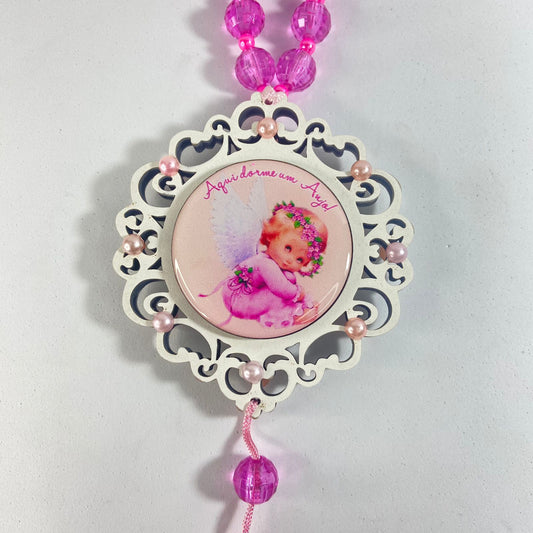 MEDALHÃO DE PORTA RESINADO PEQUENO ANJO ROSA (1 UNIDADE)