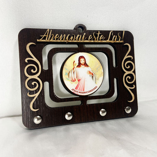 PORTA CHAVE VAZADO RESINADO JESUS MISERICORDIOSO 14CM (1 UNIDADE)