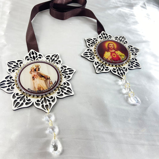 ESCAPULARIO DE PORTA ESTRELA BRANCA SAGRADO CORAÇÃO DE JESUS E NOSSA SENHORA DO CARMO (1 UNIDADE)