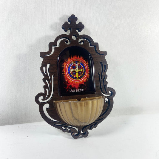 PORTA AGUA BENTA MDF MEDALHA SÃO BENTO 16CM (1 UNIDADE)