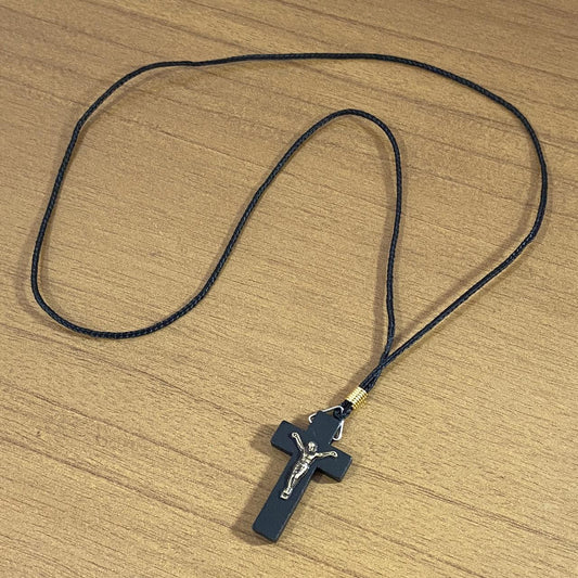 CORDÃO COM CRUCIFIXO DE MADEIRA PRETO (12 UNIDADES)