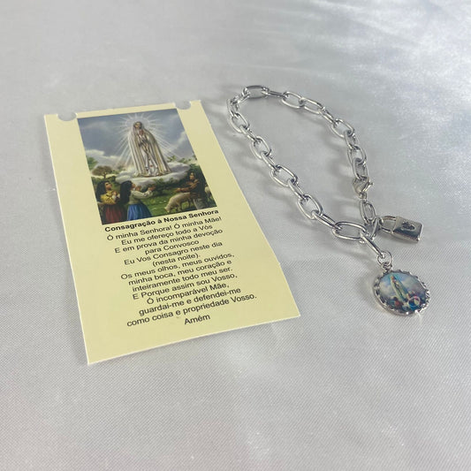 PULSEIRA CADEADO NOSSA SENHORA DE FÁTIMA NA CARTELA (3 UNIDADES)