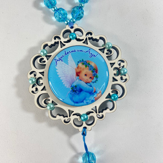 MEDALHÃO DE PORTA RESINADO PEQUENO ANJO AZUL (1 UNIDADE)