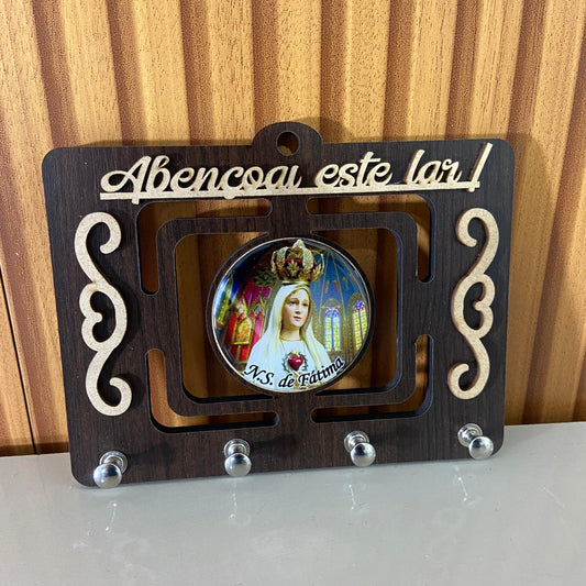 PORTA CHAVE VAZADO RESINADO NOSSA SENHORA DE FÁTIMA 14CM (1 UNIDADE)
