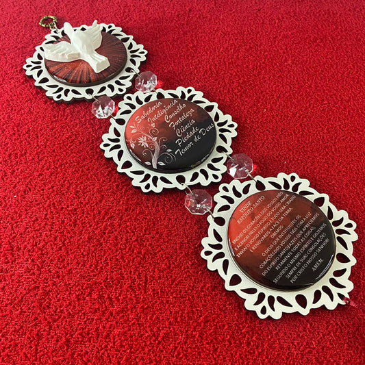 ADORNO TRIPLO REDONDO BRANCO DIVINO ESPIRITO SANTO EM RELEVO (1 UNIDADE)