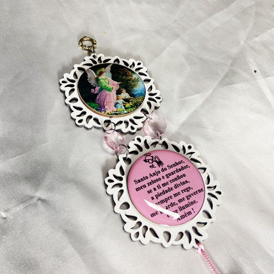 ADORNO DUPLO MINI CIRCULO ANJO DA GUARDA ROSA (1 UNIDADE)