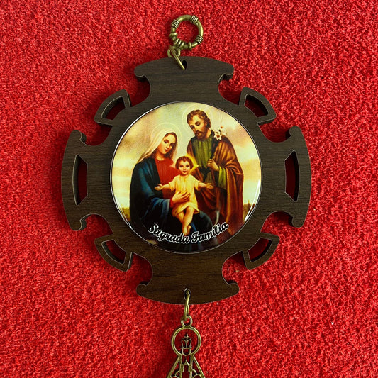 ADORNO DUPLO SAGRADA FAMÍLIA COM MEDALHA (1 UNIDADE)