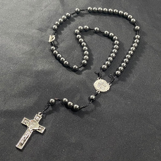 TERÇO DE HEMATITA DUAS MEDALHAS 8MM (1 UNIDADE)
