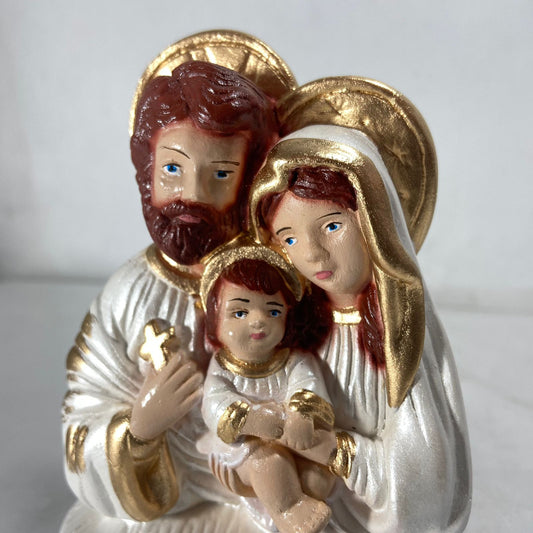 BUSTO DE GESSO SAGRADA FAMÍLIA BRANCO E DOURADO 13CM (1 UNIDADE)