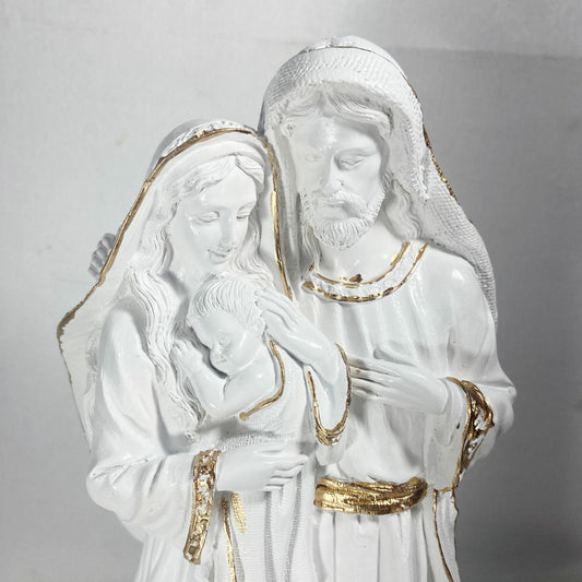 IMAGEM DE GESSO SAGRADA FAMÍLIA BRANCA E DOURADA 32,5CM (1 UNIDADE)