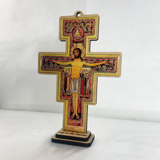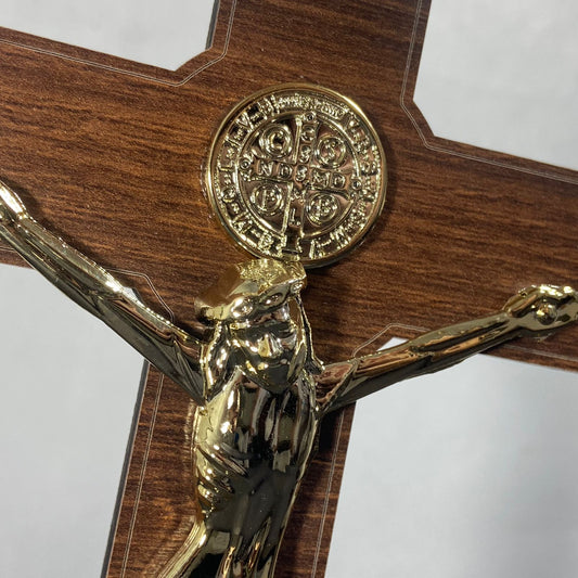 CRUCIFIXO MDF DE MESA MEDALHA SÃO BENTO COM ORAÇÃO 26CM (1 UNIDADE)