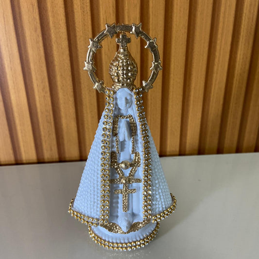 IMAGEM DE PLÁSTICO NOSSA SENHORA APARECIDA BRANCA 15CM COM RESPLENDOR E STRASS (1 UNIDADE)