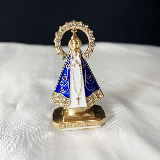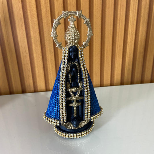 IMAGEM DE PLÁSTICO NOSSA SENHORA APARECIDA AZUL 15CM COM RESPLENDOR E STRASS (1 UNIDADE)