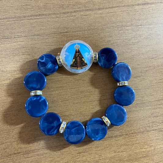 PULSEIRA ACRÍLICA COM MEDALHA RESINADA NOSSA SENHORA APARECIDA (03 UNIDADES)