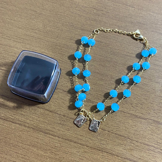 PULSEIRA ESCAPULARIO CRISTAL AZUL BEBÊ (3 UNIDADES)