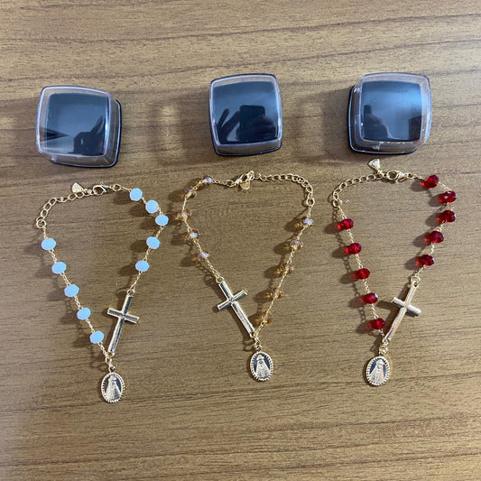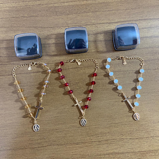 PULSEIRA CRISTAL CRUZ COM PINGENTE NOSSA SENHORA DAS GRAÇAS CORES SORTIDAS (03 UNIDADES)
