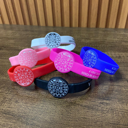 PULSEIRA SILICONE MEDALHA SÃO BENTO CORES SORTIDAS (12 UNIDADES)