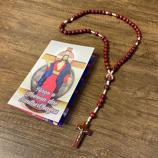TERÇO DE MADEIRA SANTAS CHAGAS 8MM MOD2 (3 UNIDADES)