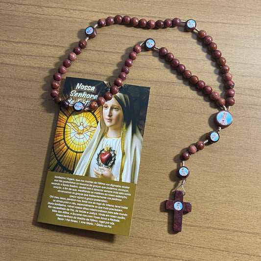 TERÇO DE MADEIRA NOSSA SENHORA DE FÁTIMA MOD4 8MM (3 UNIDADES)