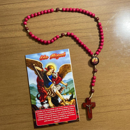 TERÇO DE MADEIRA SÃO MIGUEL ARCANJO 7 MEDALHAS 8MM MOD2 (3 UNIDADES)
