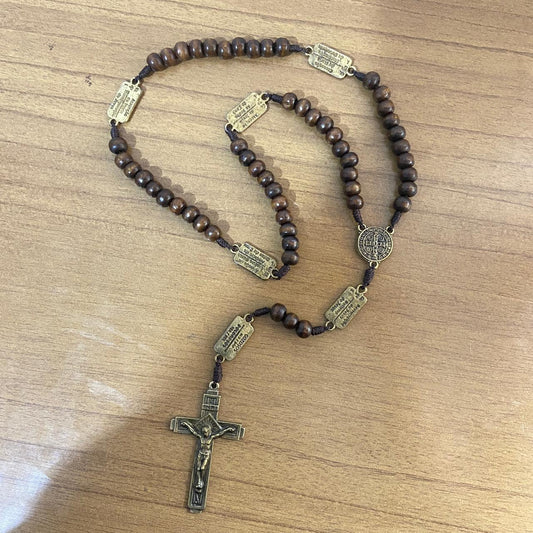 TERÇO DE MADEIRA NOSSA SENHORA APARECIDA E MEDALHA SÃO BENTO 7 MEDALHAS 8MM (3 UNIDADES)