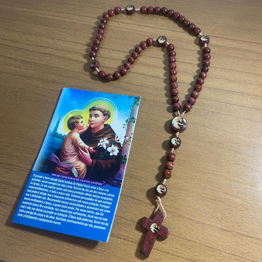 TERÇO DE MADEIRA SANTO ANTÔNIO 7 MEDALHAS 08MM (3 UNIDADES)