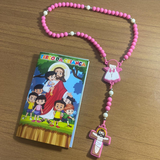 TERÇO DA CRIANÇA ANJO DA GUARDA ROSA 08MM (1 UNIDADE)