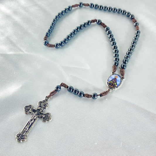 TERÇO DE HEMATITA NOSSA SENHORA APARECIDA 6MM (3 UNIDADES)